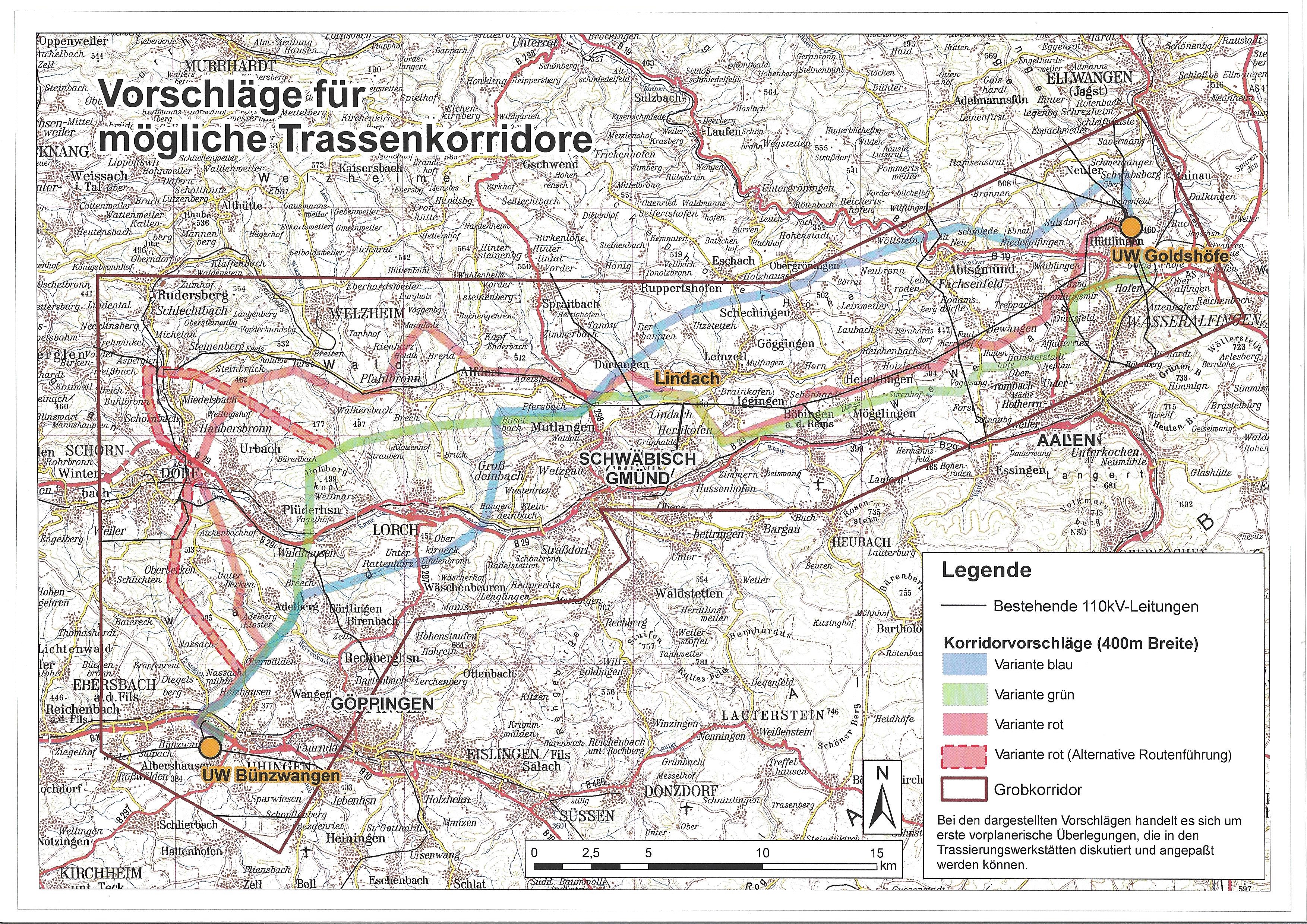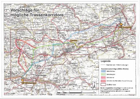 Die Firma Transnet plant eine 380 KV Trasse zwischen den Umspannwerken Bünzwangen und Goldshöfe zu bauen. Wie könnte das aussehen? Download Datei